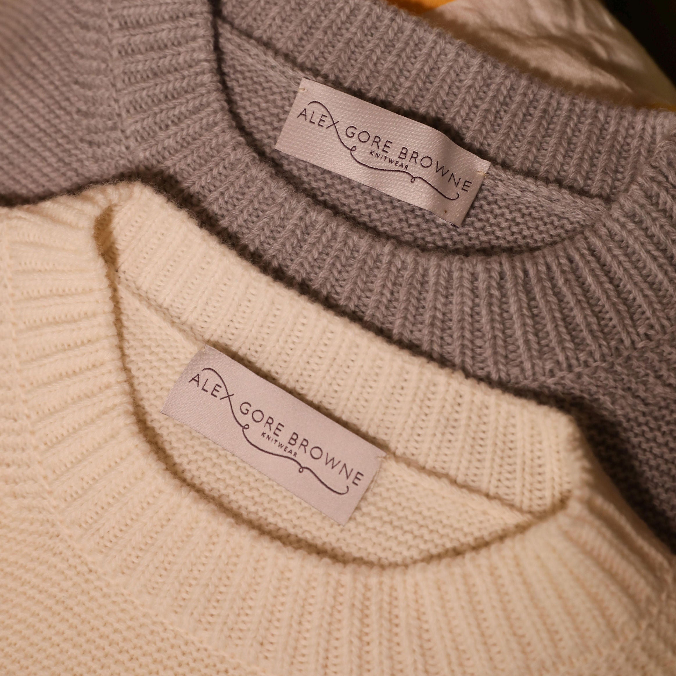 Our pieces are knitted in a carefully picked, family run Italian factory, where living wages are paid, regular audits are carried out and working practices are monitored and held to a quality standard. Our pieces are then hand finished and delicately embroidered by the AGB team here in our solar-powered studio in Oxfordshire, before being packed into recycled card packaging and sent off to our lovely customers.